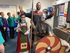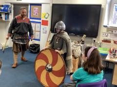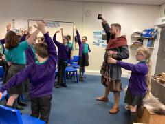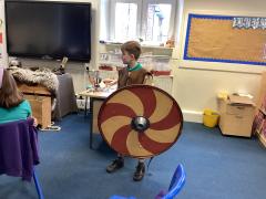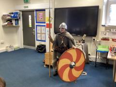 Y5 were thrilled and amazed when Olaf Grimson - the Viking - came to visit! He taught them all about life as a Viking settler in 9th / 10th Century 'Englalonde' and even trained them up to be both the attackers and defenders in a battle, forming their very own shield wall. The whole class learnt so much, which will stand them in good stead as we continue our topic on the Anglo-Saxons and the Vikings.