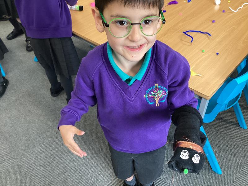 Y1 had lots of fun this week, designing and making an 'alien sock puppet' as part of their English topic based on the story of 'Beegu.' They described their new aliens, gave them names and are now enjoying writing a story all about their alien and how it ended up on Planet Earth. We can't wait to read their stories!
