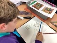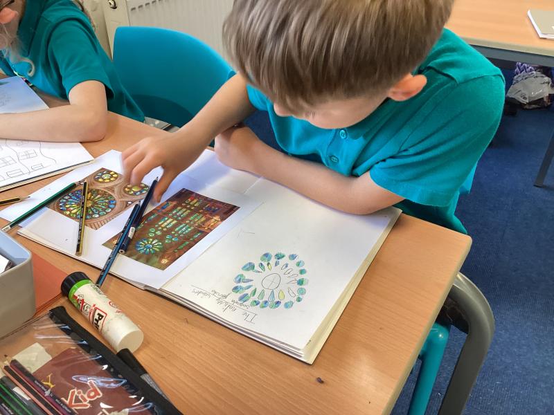 In their new art topic, Year 4 have been finding out how the architect Antoni Gaudi used nature to inspire the buildings he designed. They then sketched some of his buildings and the stained glass windows from the Sagrada Familia church in Barcelona.