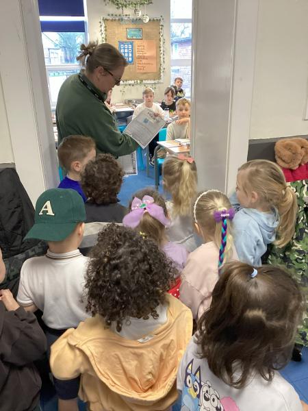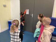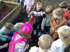 We loved going round school and displaying our posters for everyone to see. That same afternoon we got a call from Mrs Kent to say she had seen something blue out of the window. We loved discovering the Bog Baby in Forest School and we decided to leave him there because that's where he belongs!