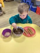 This week Little Explorers have been thinking about Bonfire Night and Remembrance Day. They have used the interactive board to colour in some firework pictures, made chocolate breadstick sparklers and made playdough poppies.