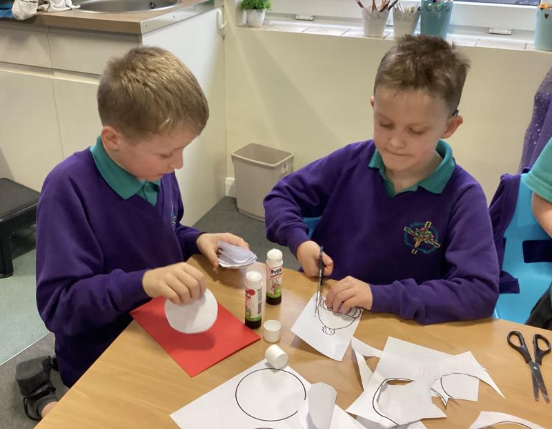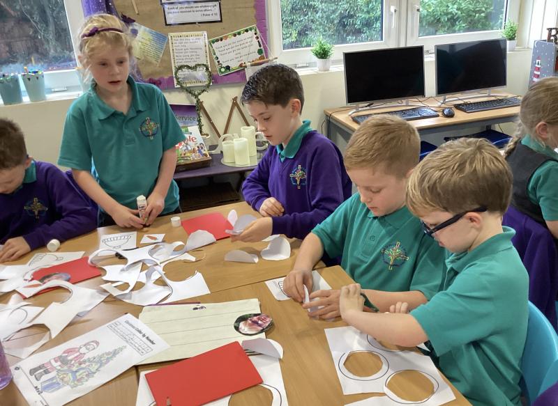 Whilst some of their classmates were singing in the choir, the remaining Year 4 class members went to help Year 2 make Christmas cards. The collaboration and support between the children was wonderful to see.