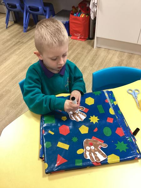 Little Explorers have had lots of fun painting their hands to make handprint reindeers. They have hung some up in the classroom and also around school for the other children to spot! They are hoping to put some around the village later in the week to spread some festive cheer.