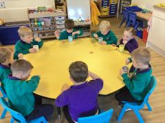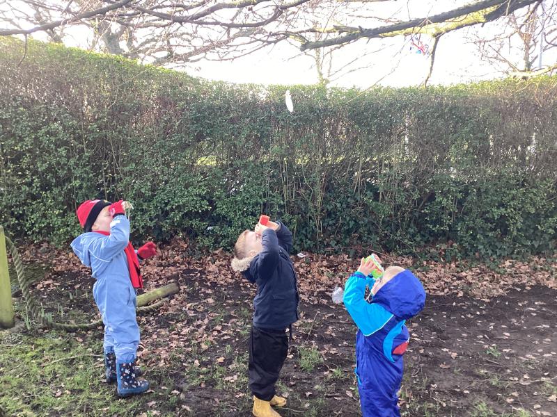 This week, Little Explorers have been focusing on birds. They enjoyed going into forest school to see which birds they could spot using their binoculars, which they had made. They also collected some sticks and leaves to make their own cosy nests for the owl and warmed up with a yummy hot chocolate once back inside.