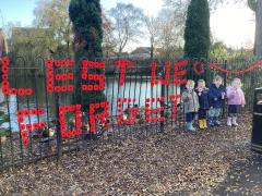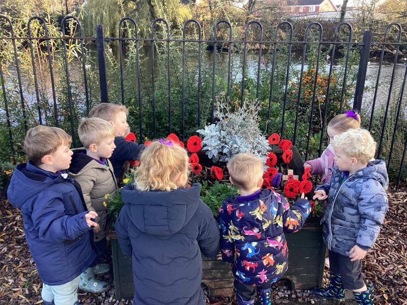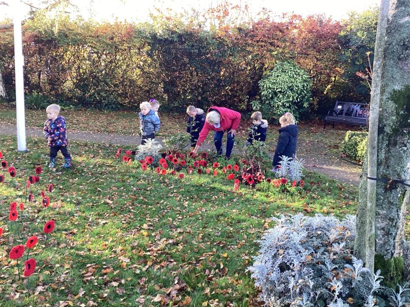 The Little Explorers have been learning about Remembrance Day and went on a walk to see all the poppies on display in the village.