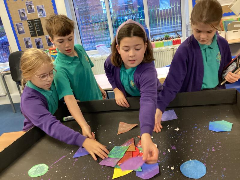 Year 5 have been working on a collective piece of abstract art work. They explored colours and textures as they created their own celestial body to add to our galaxy.