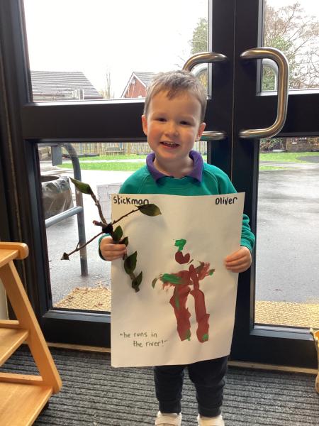 This week Little Explorers have enjoyed exploring in Forest school to find sticks and leaves to make their own Stickmen! They had lots of fun creating their very own version of him and also paining Stickman too!