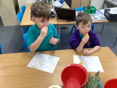 What a fantastic first week back to school Year 1 have had! They loved their Design and Technology project making a tasty and colourful fruit salad. During the planning process, they tasted different tropical fruits; chose their favourite fruits for their design; and practised cutting skills using play dough. Finally, on Thursday, they put their skills into practice and cut up all of the fruit for their own fruit salad and loved eating them too! We are very impressed with how much they loved trying all sorts of different fruits. Well done Year 1!