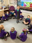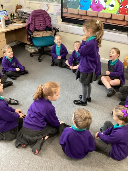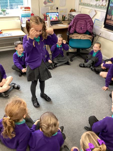 Year 1 have been learning how to add "-ed" and "-ing" to verbs in phonics this week. Today, they played a game of charades using different verbs. Each child had to choose a word from the pile and act it out without speaking. The rest of the class then guessed what 'verb' they were acting out. They had lots of fun whilst practising their reading skills!