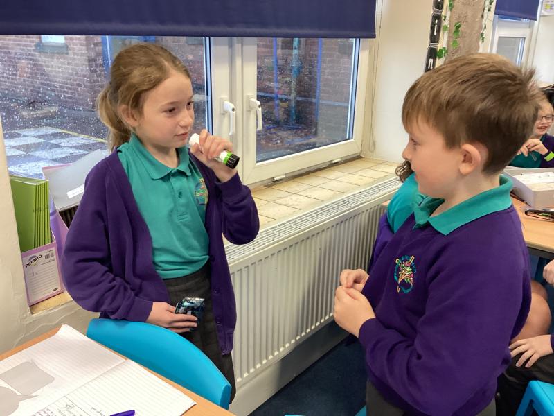 Year Four have been in role as police officers and eye-witnesses today! They have been interviewing each other to find out about some unusual robotic objects found scattered in fields on the outskirts of the village!
