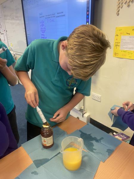 Year 4 have been investigating liquids as part of their Science topic: States of Matter. They were trying to find out the answer to the question “Which liquid is the runniest?” They even learned some scientific vocabulary, “viscosity.”