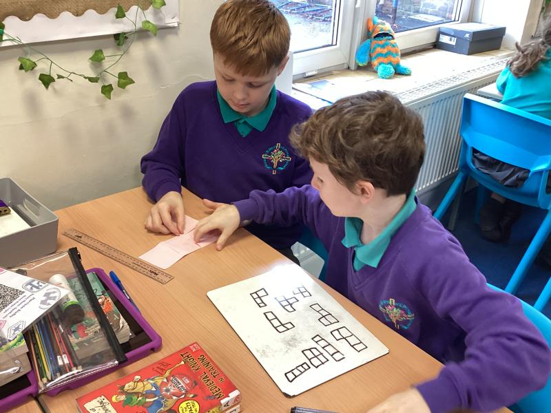 Year Four have been working practically in maths to explore and manipulate areas and shapes.
